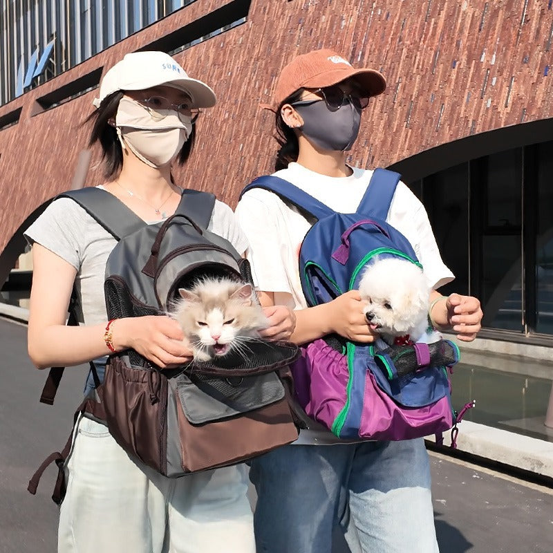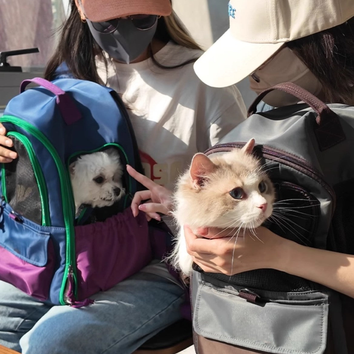 ペットを抱っこしながら両手が自由に使えるリュック型キャリー。通院や災害時の避難、お散歩など、様々なシーンで活躍します。